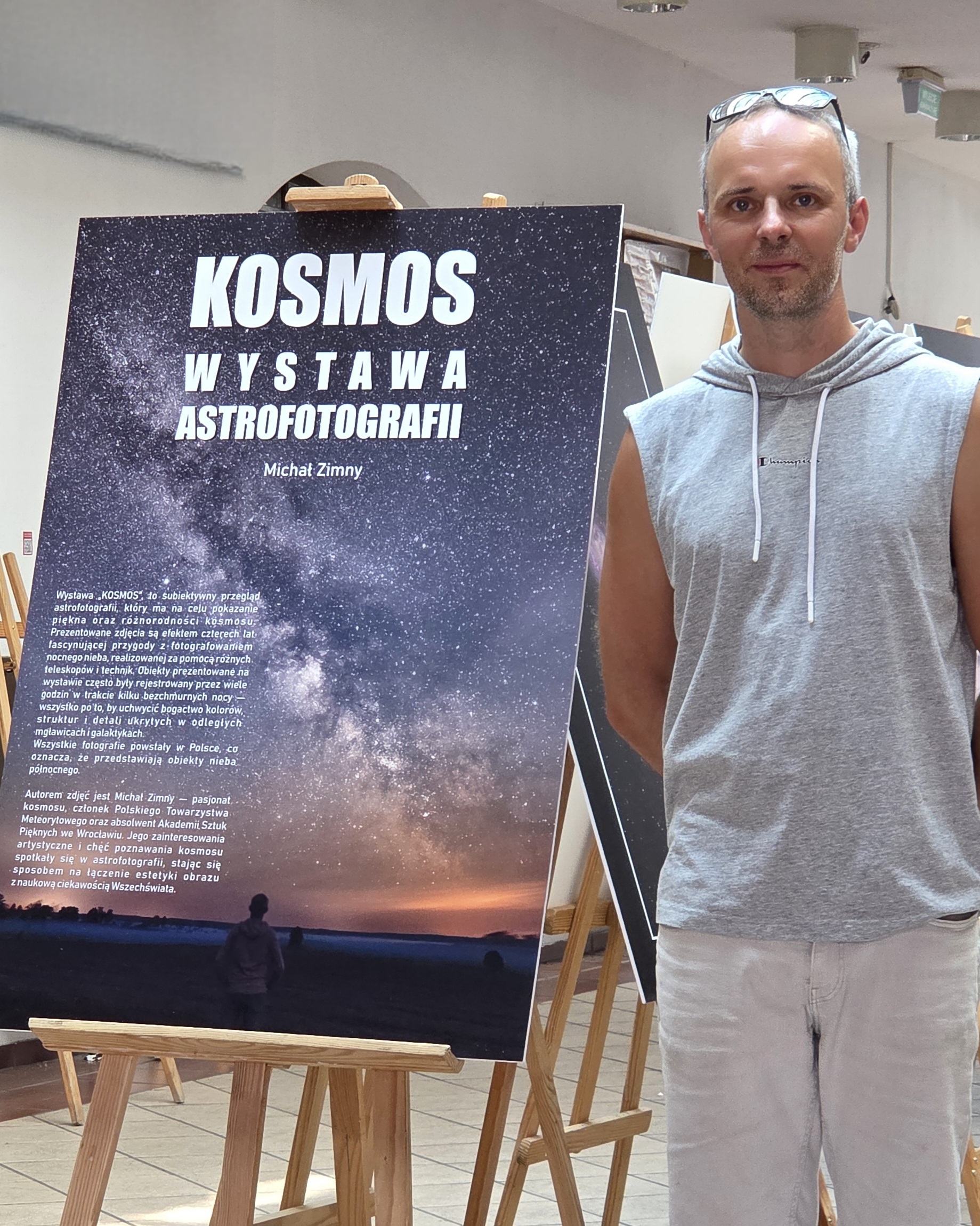 Wystawa KOSMOS to subiektywny przegląd astrofotografii, ukazujący piękno nocnego nieba. Autor, Michał Zimny — pokazuje na swą ekspozycją efekty 4-letniej fascynującej przygody z teleskopami i aparatami.