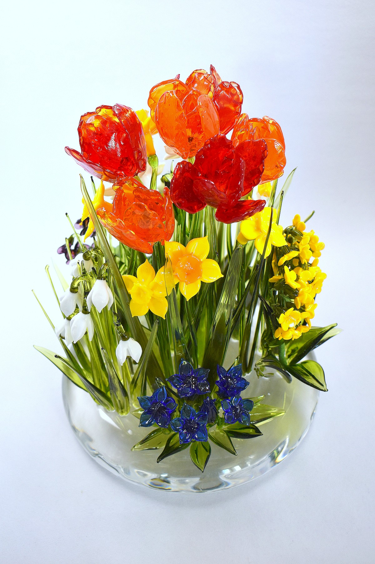 W tym roku możemy wziąć udział w konkursie na szklaną wiosenną łąkę kwiatową! Delikatne kwiaty ze szkła rozkwitły w ogniu pod rękami jabloneckiej mistrzyni szklarskiej Marii Horčičkovej. Artystka umieściła swój bukiet w przezroczystej szklanej podstawie z huty Jiřího Pačinka.