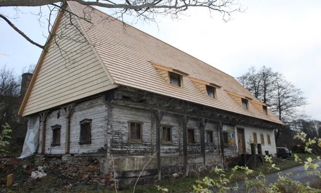Budynek na etapie prac konserwatorskich wspartych ze środków MKiDN 2011, 2012, 2013, 2014 r. i Dolnośląskiego Urzędu Marszałkowskiego 2011, 2012, 2013 r.
