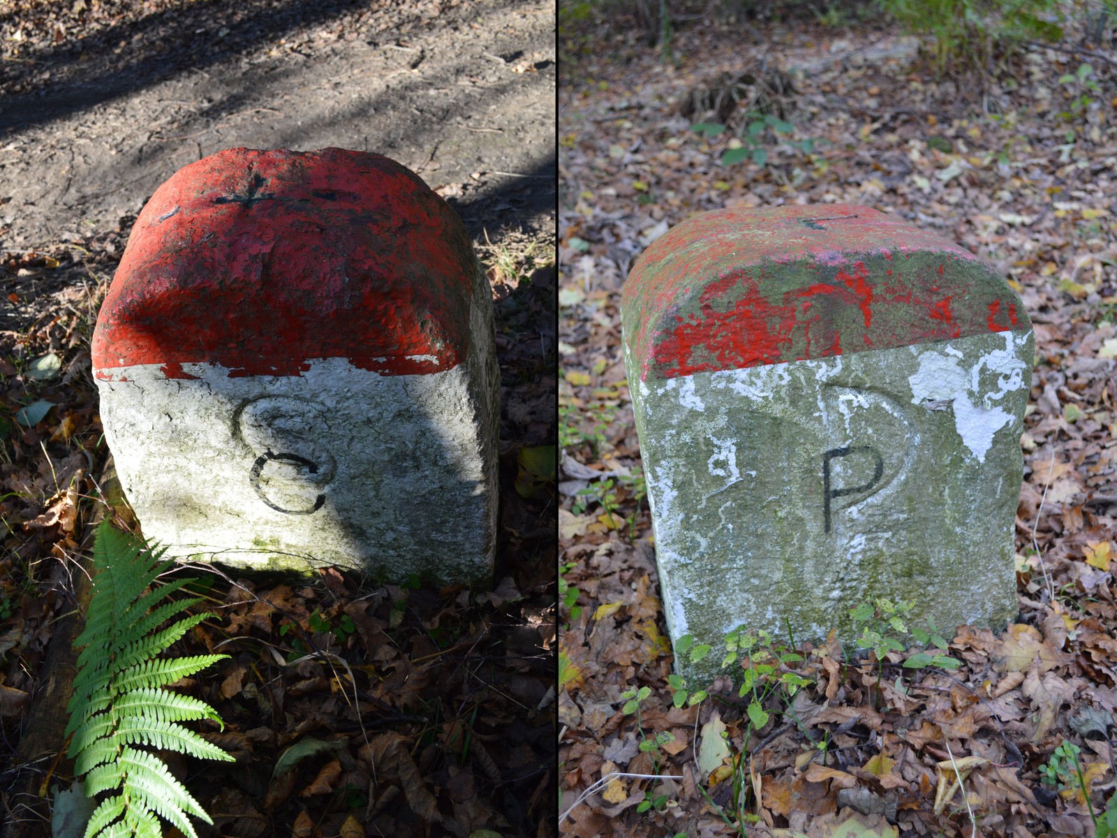 Słupki graniczne wyznaczające granicę w terenie, zostały ustawione w latach 20. XX stulecia. Po nastaniu Państwa Polskiego na Górnych Łużycach wykutą w granicie literę D przekuto na P. W latach 90. przeszły kolejną zmianę. Po obu stronach przemalowano je - nowe P i C zastąpiły dawne D/P i splecione CS (symbolizujące Czechosłowację).