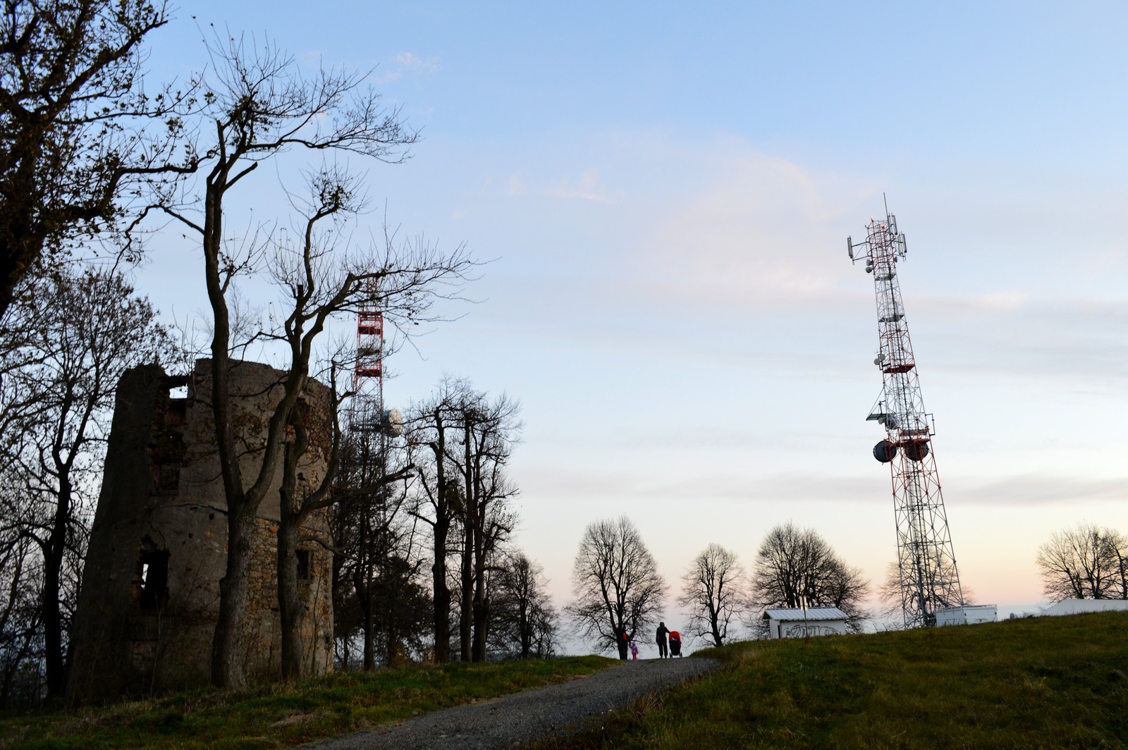 Poniżej, na wysokości ok. 460 m n.p.m., w latach 70. XX w. wybudowano ażurową wieżę telekomunikacyjną dla przekaźnika TV. Dziś to ważny węzeł łącznościowy w rejonie Bogatyni. Niestety jak większość tego typu instalacji jest niedostępny dla turystów.