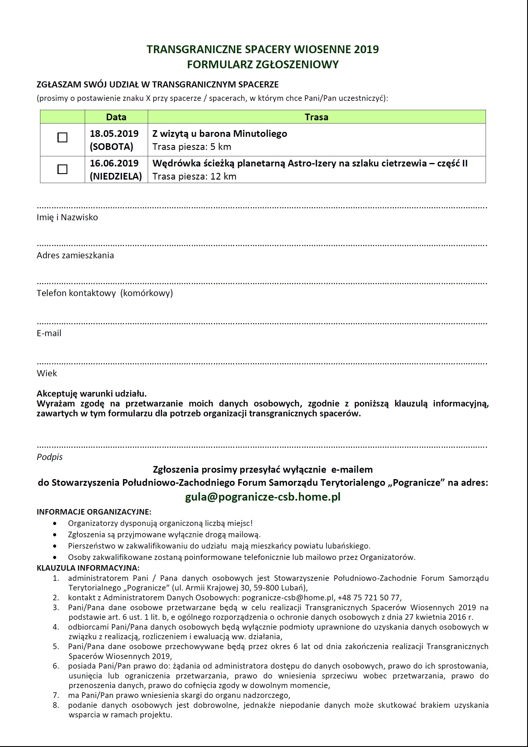Zgłoszenia przyjmuje Magdalena Gułą w POGRANICZA poprzez e-pocztę gula@pogranicze-csb.home.pl